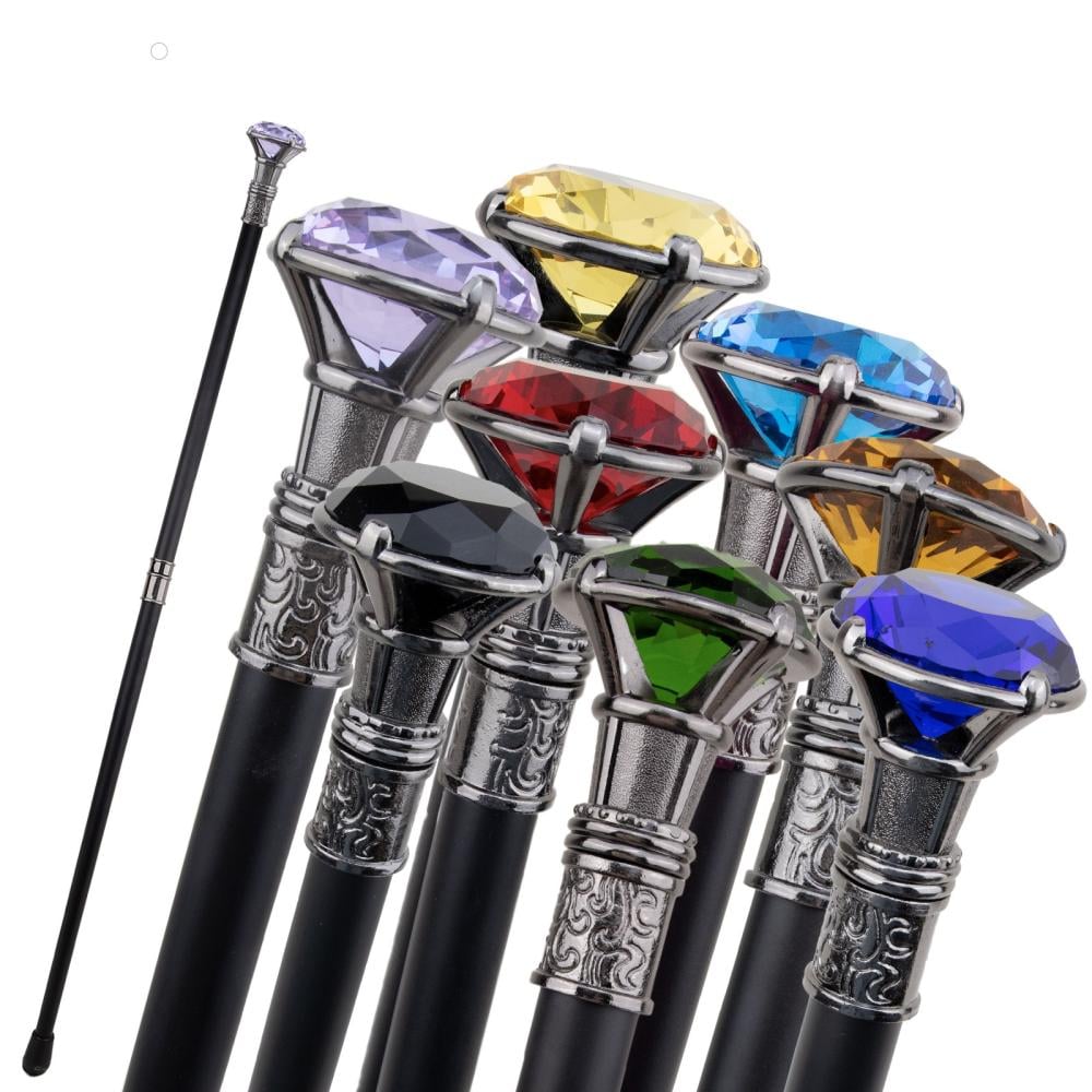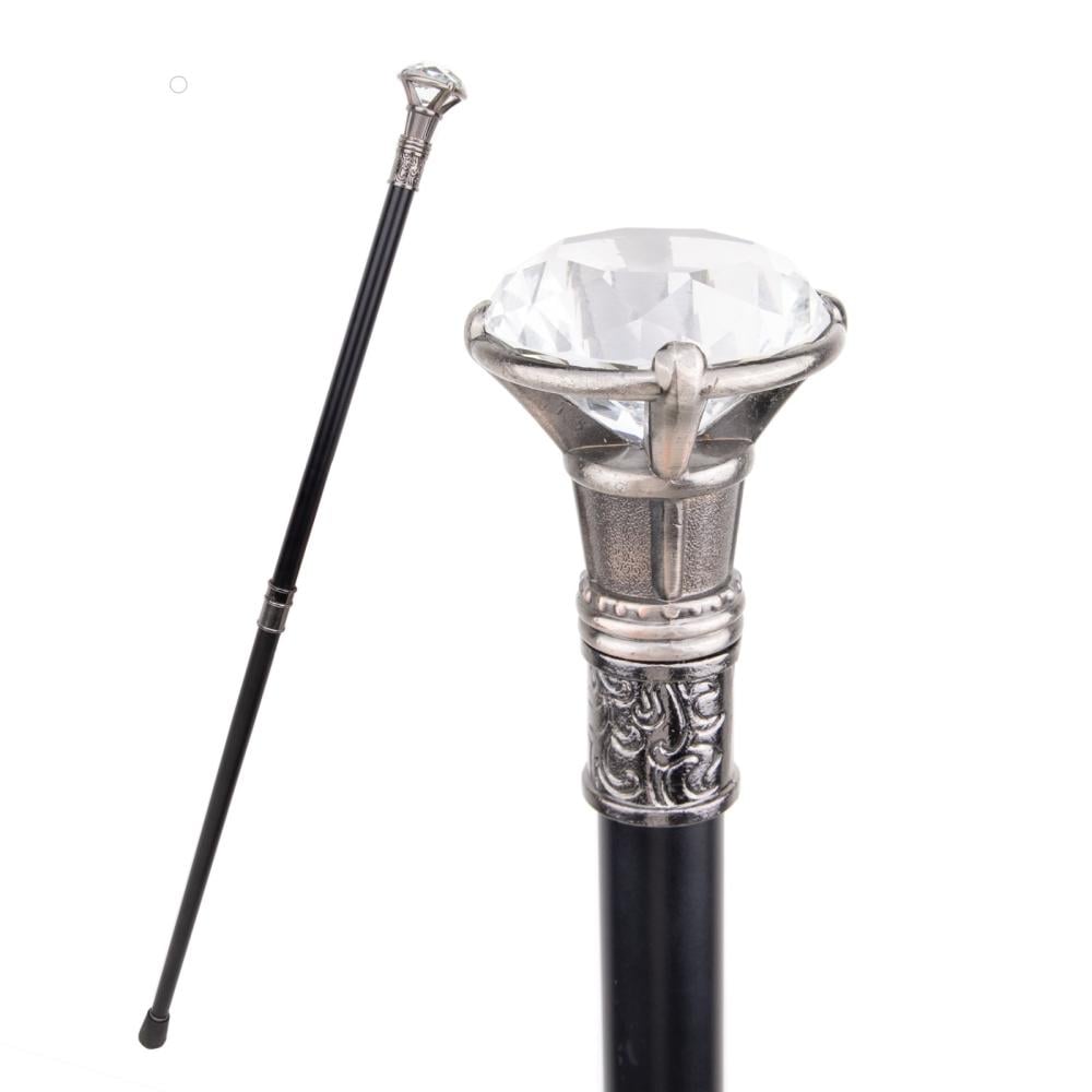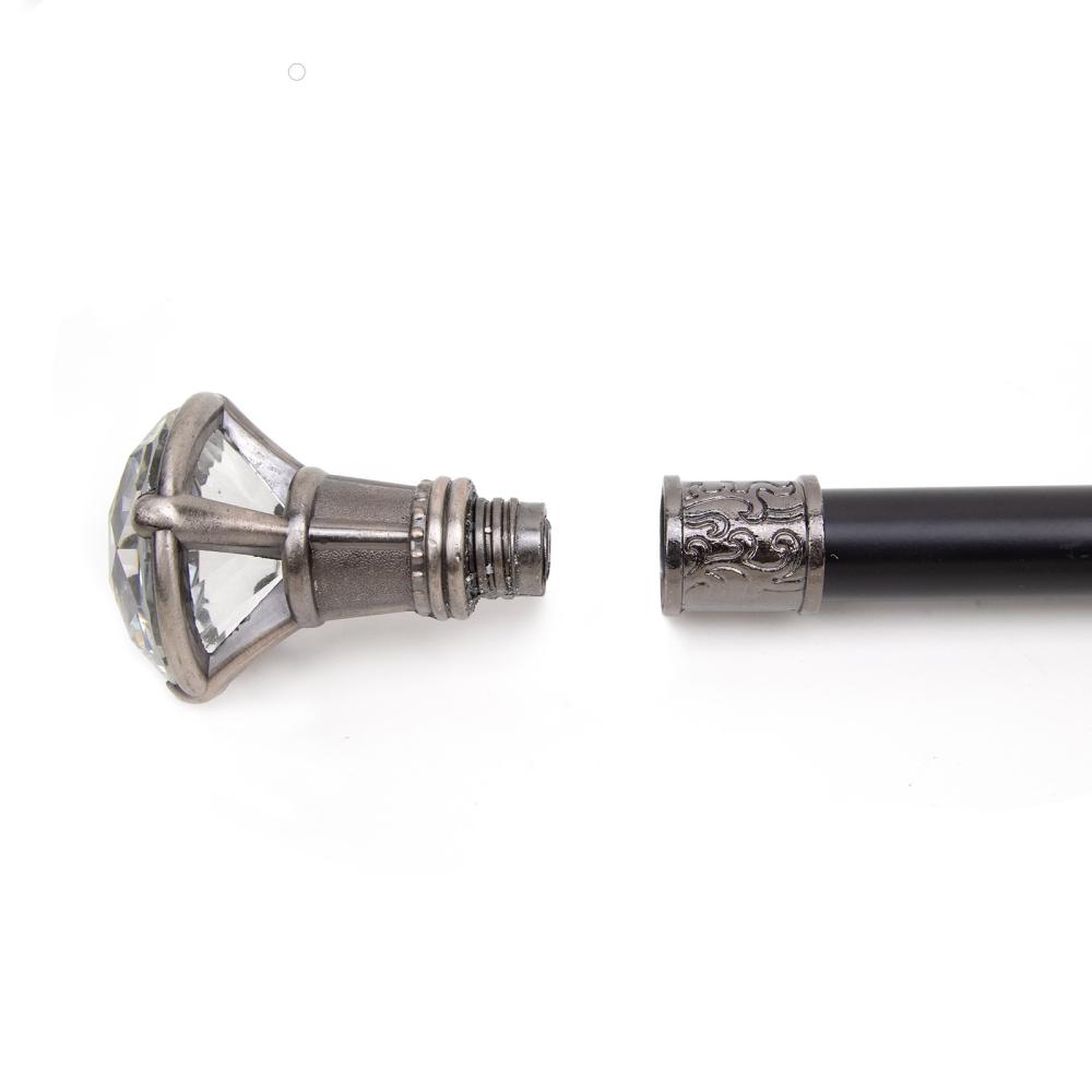 - مقبض من المعدن باللون الفضي بشكل ماسة زجاجية
