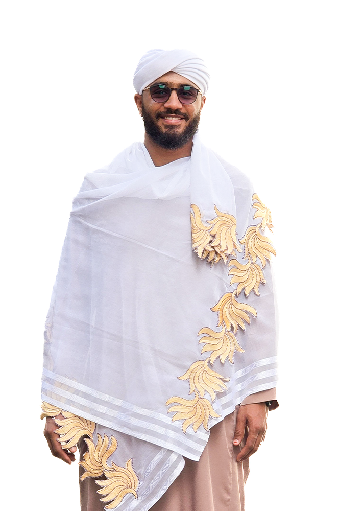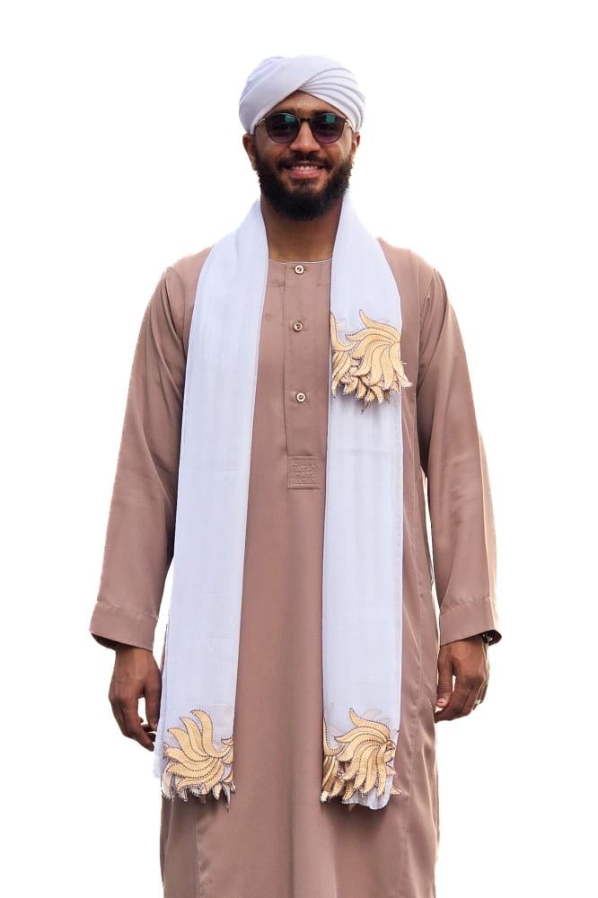 طقم عمة وشال باللون الذهبي والبنفسجي